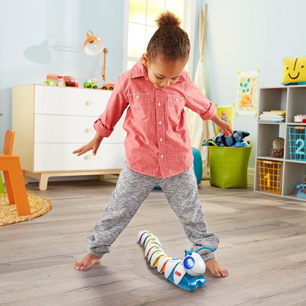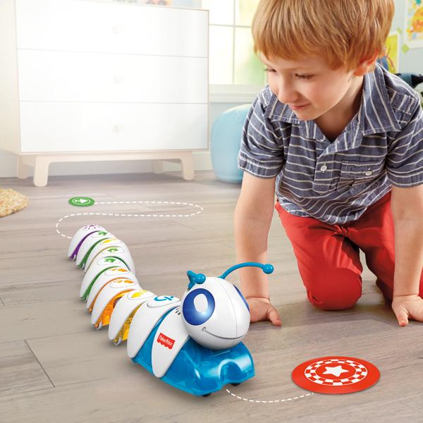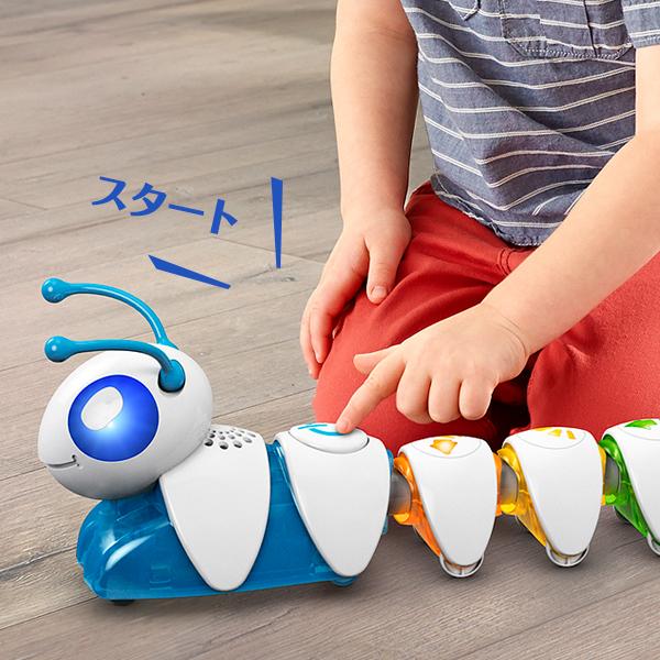 イモムシ型のプログラミングの新感覚おもちゃ。